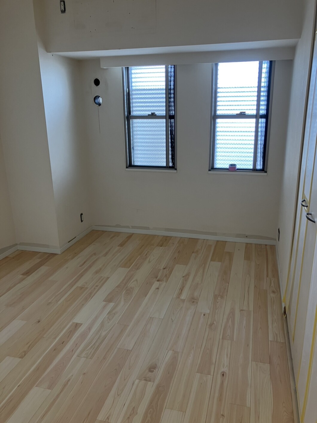 床はLL45を取得したホーテックの防音直貼り無垢フローリング『音静香』 桧の素地フローリングです。